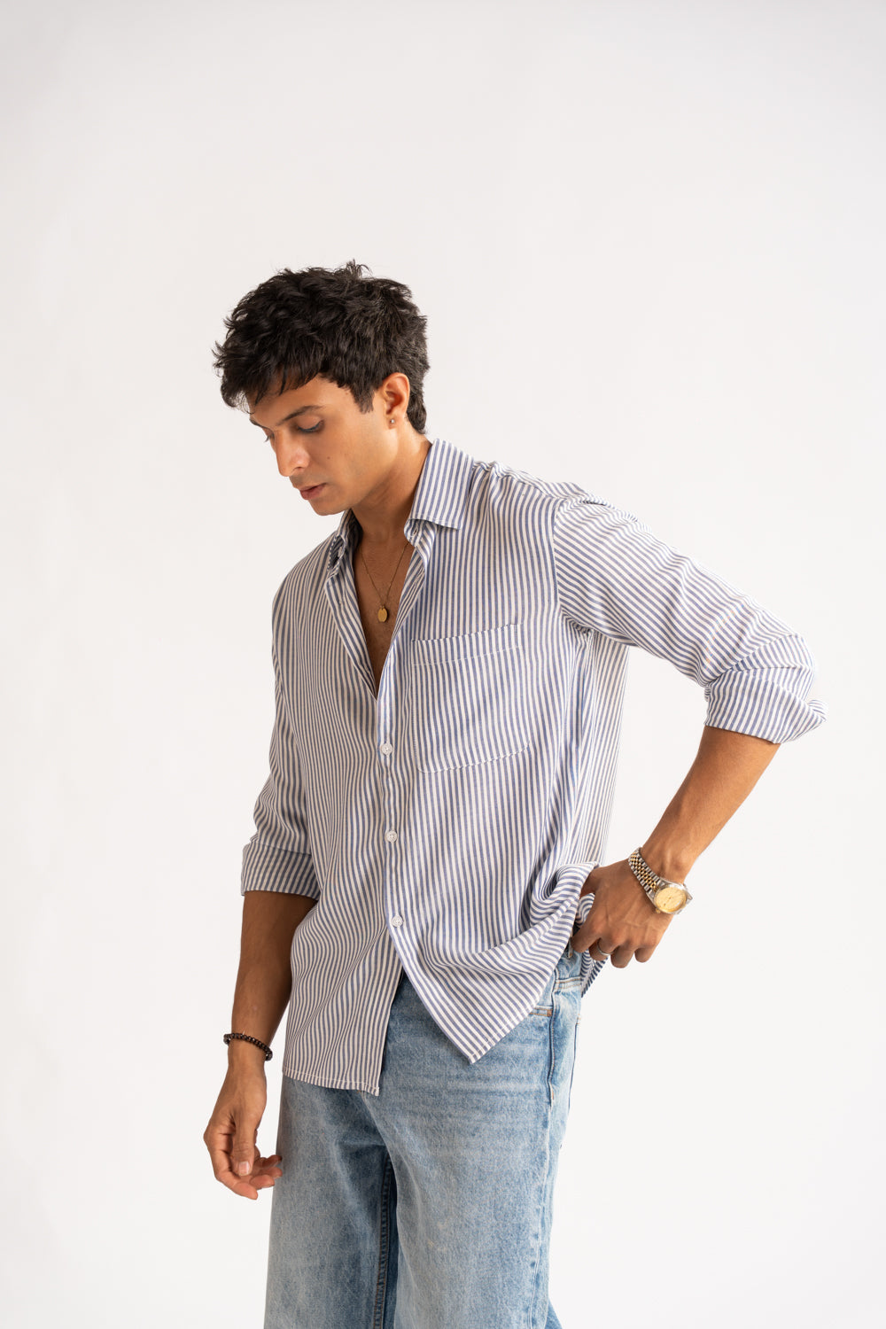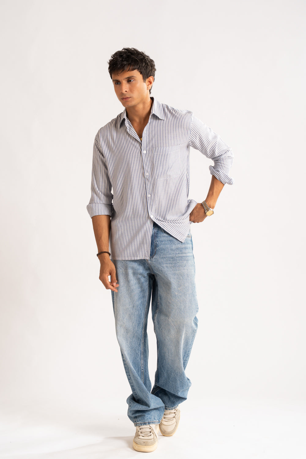 The laid-back, boxy fit of this shirt makes it an essential for the weekend wardrobe, it's cut from 100% cotton and features a classic collar, full sleeves.