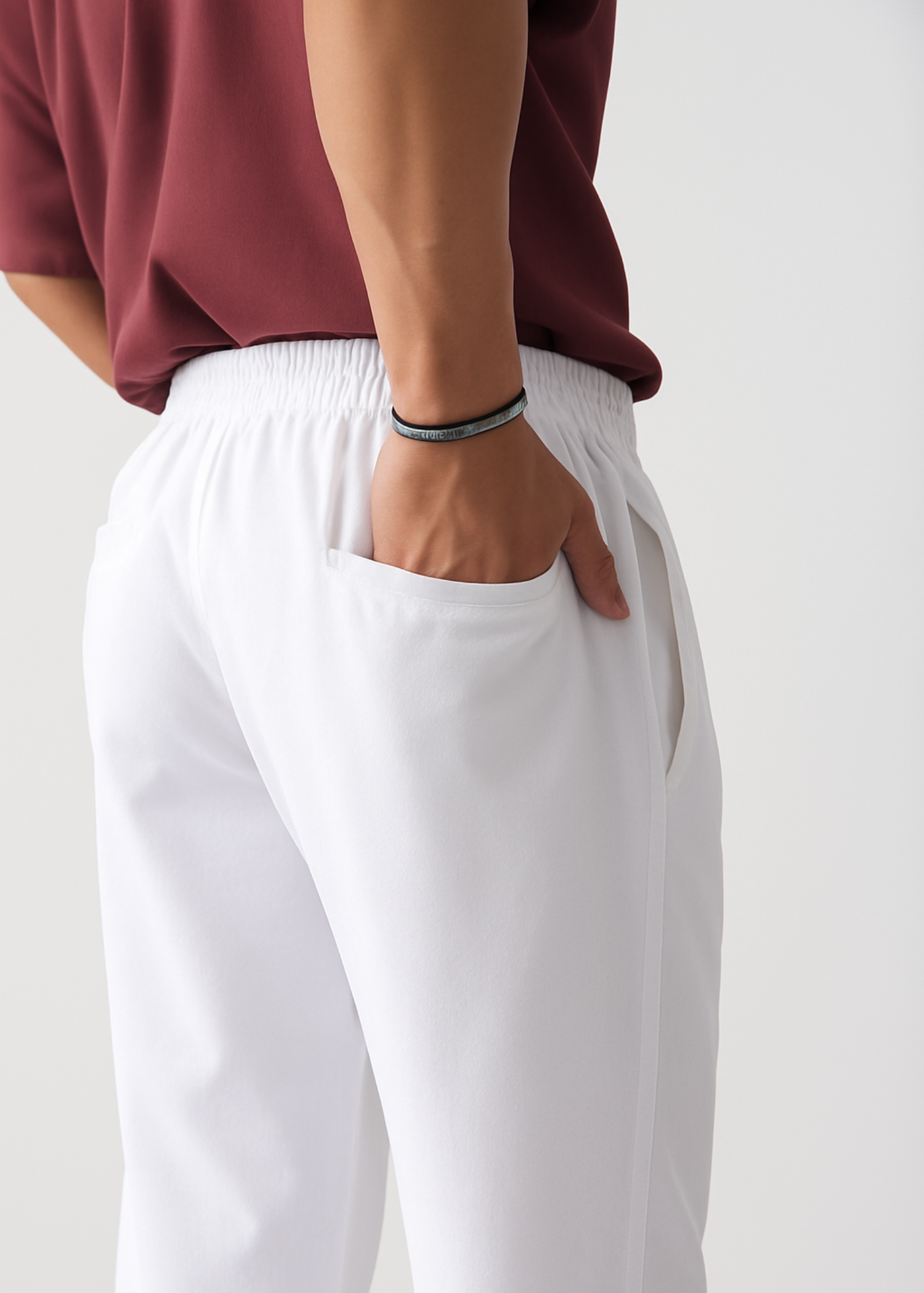 Linen Blend Premium fabric breathable soft Pant Elastic Waist Band with Drawstrings Straight Leg Silhouette with Side Pockets & Back Pocket.