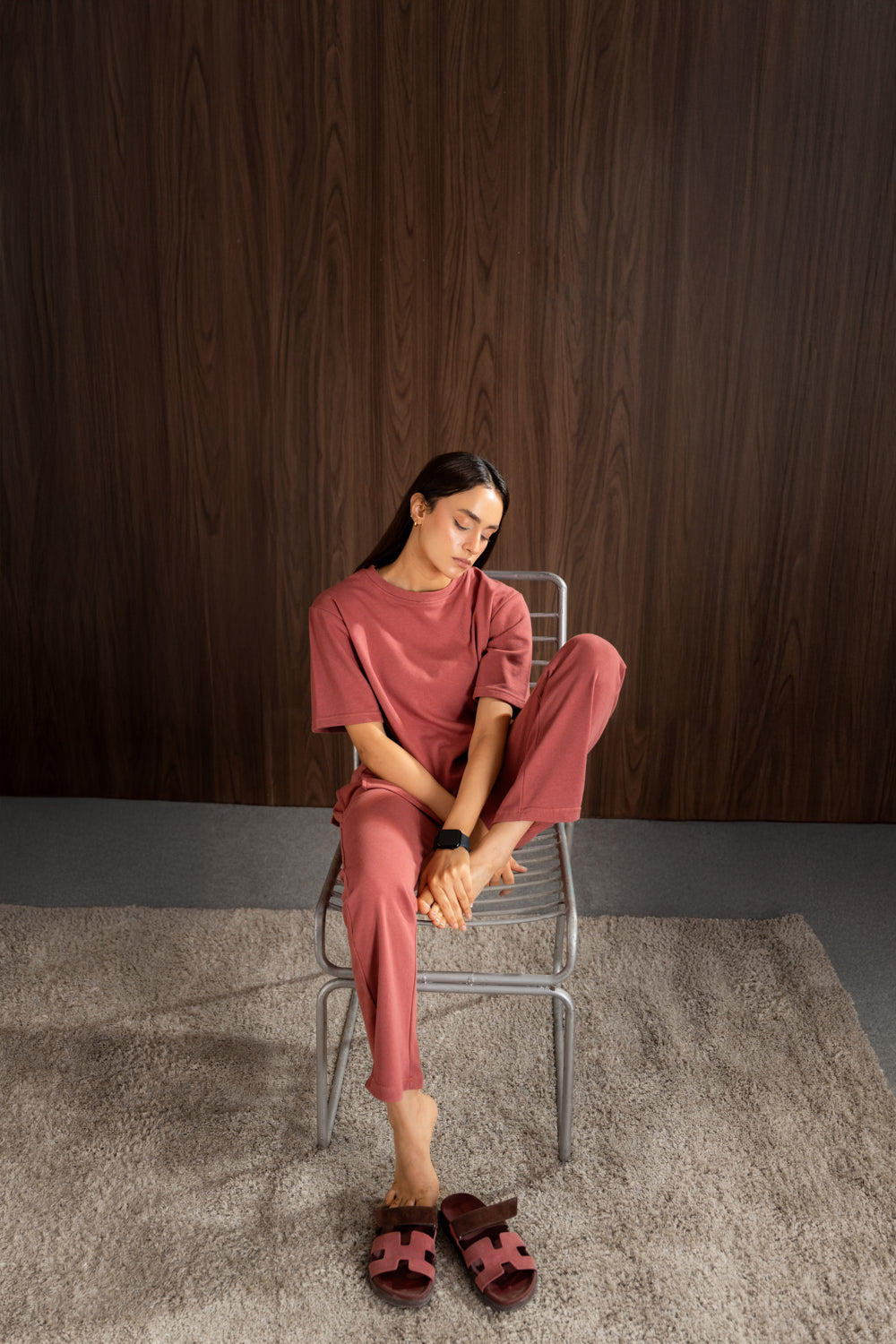 T-shirt made of soft, compact stretchy terry fabric featuring a round neck short length sleeves and side vent at the...