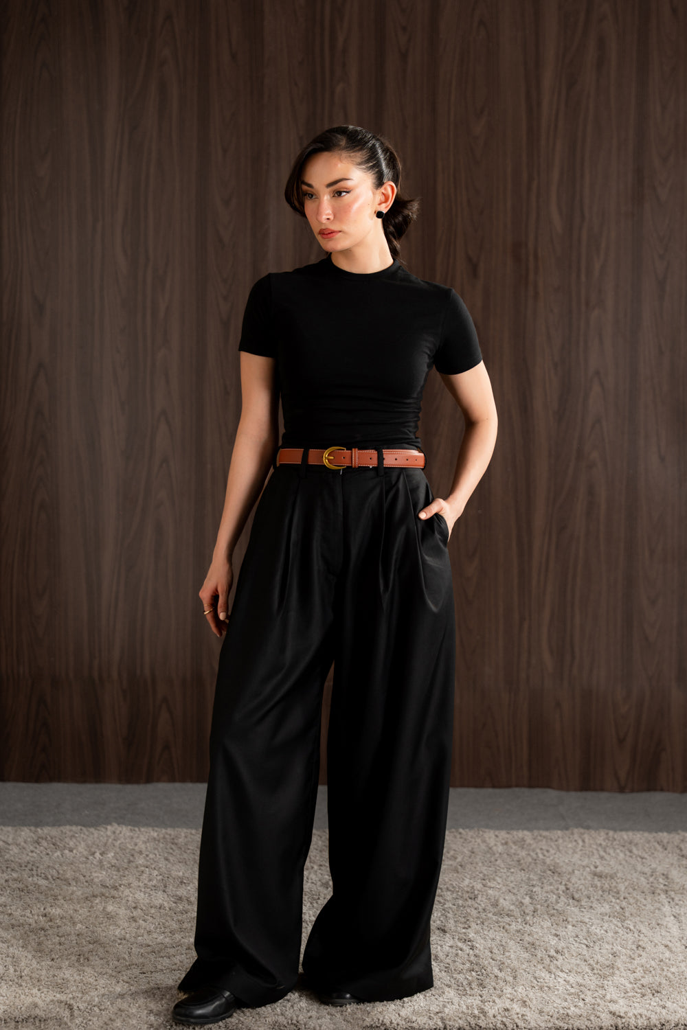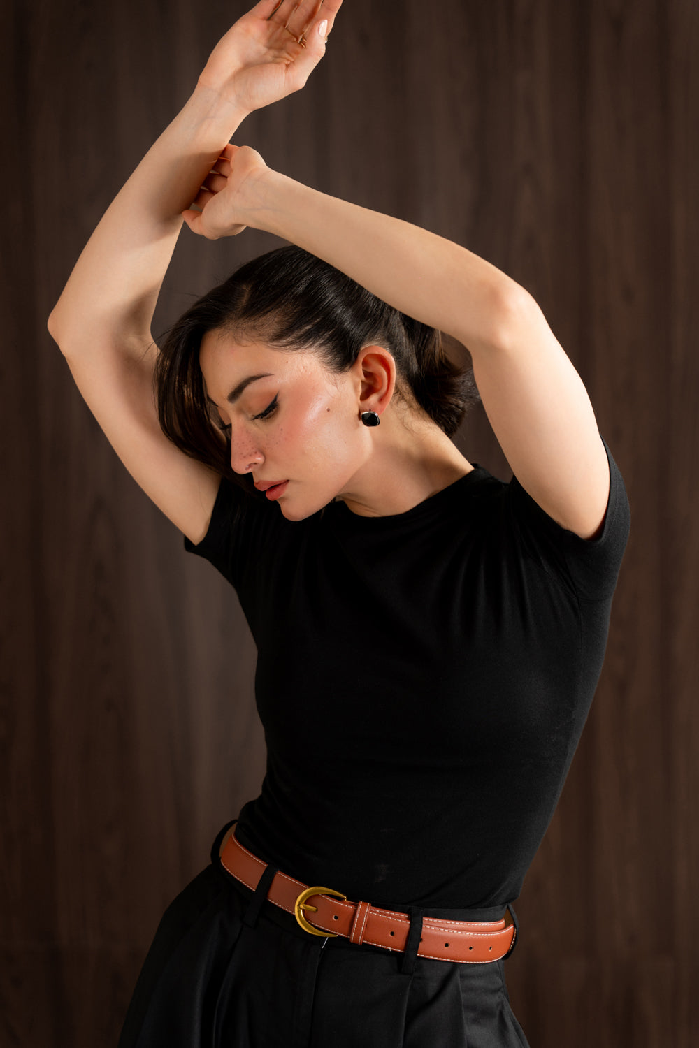 Crafted from soft cotton yarn with a touch of elastane, this fitted T-shirt features a round neck and short sleeves. Clean, versatile, and form-flattering, it stands as a true core essential for everyday wear. -    Fitted silhouette -    Cotton-elastane blend The model is 5’6" (170 cm) and is wearing a size XS.