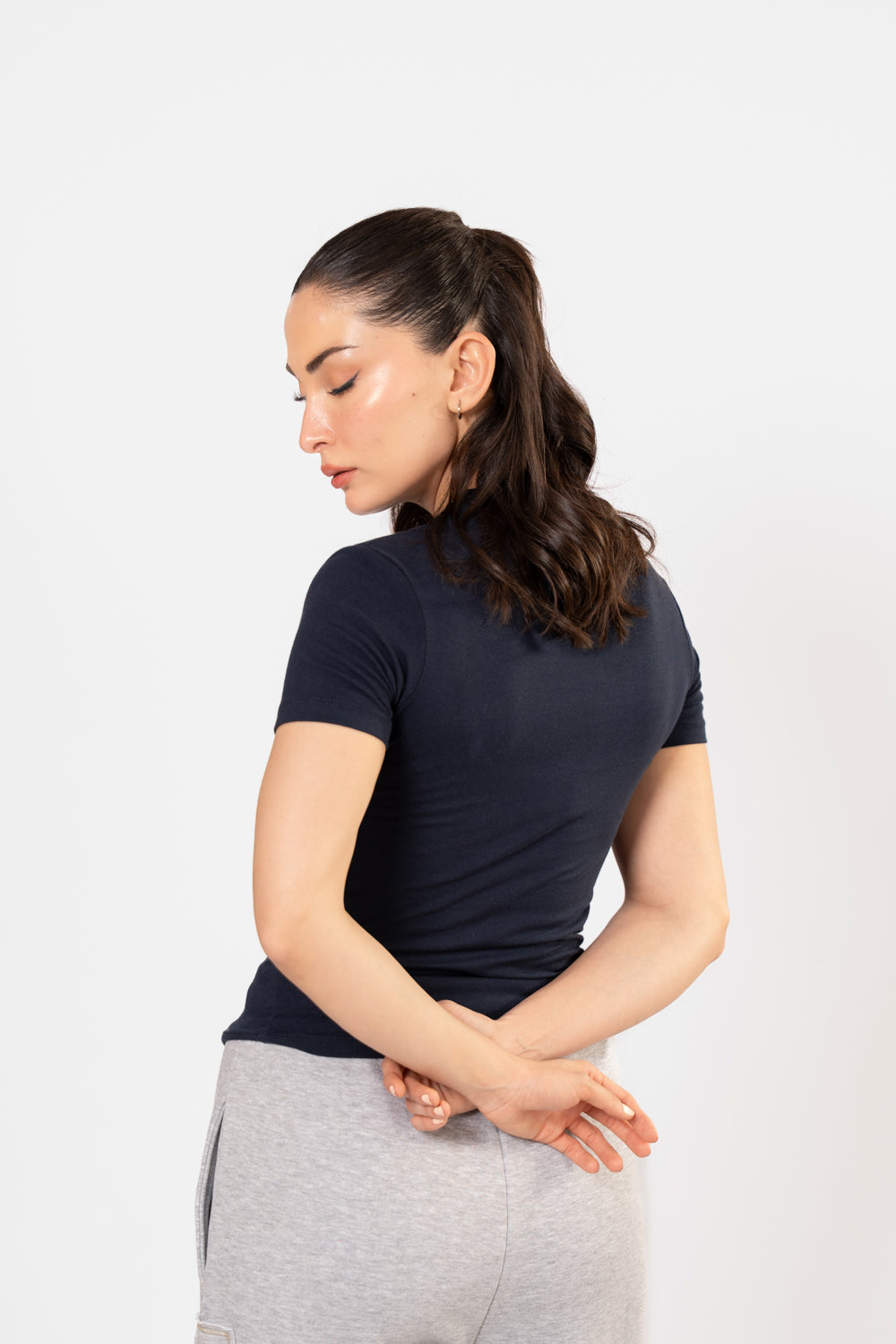 Crafted from soft cotton yarn with a touch of elastane, this fitted T-shirt features a round neck and short sleeves. Clean, versatile, and form-flattering, it stands as a true core essential for everyday wear. -    Fitted silhouette -    Cotton-elastane blend The model is 5’6" (170 cm) and is wearing a size XS.