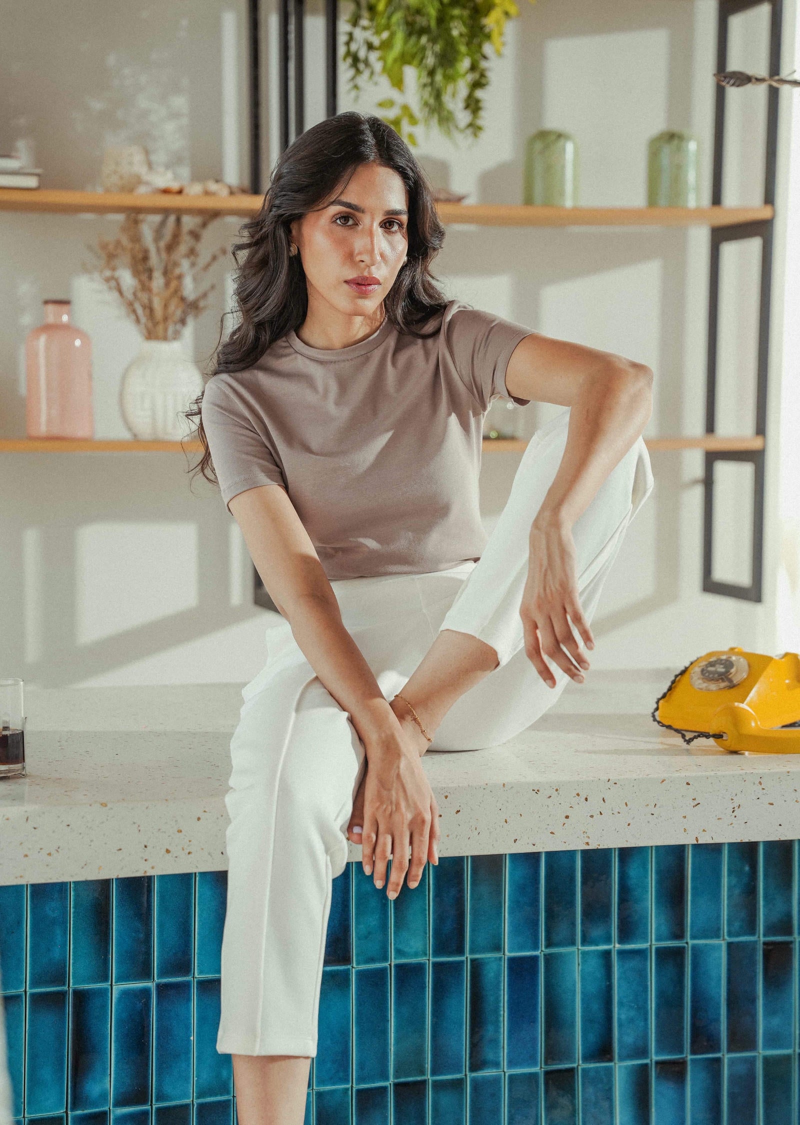 T-shirt made from soft cotton yarn with elastan. Featuring a round neck short sleeves and slim fit.