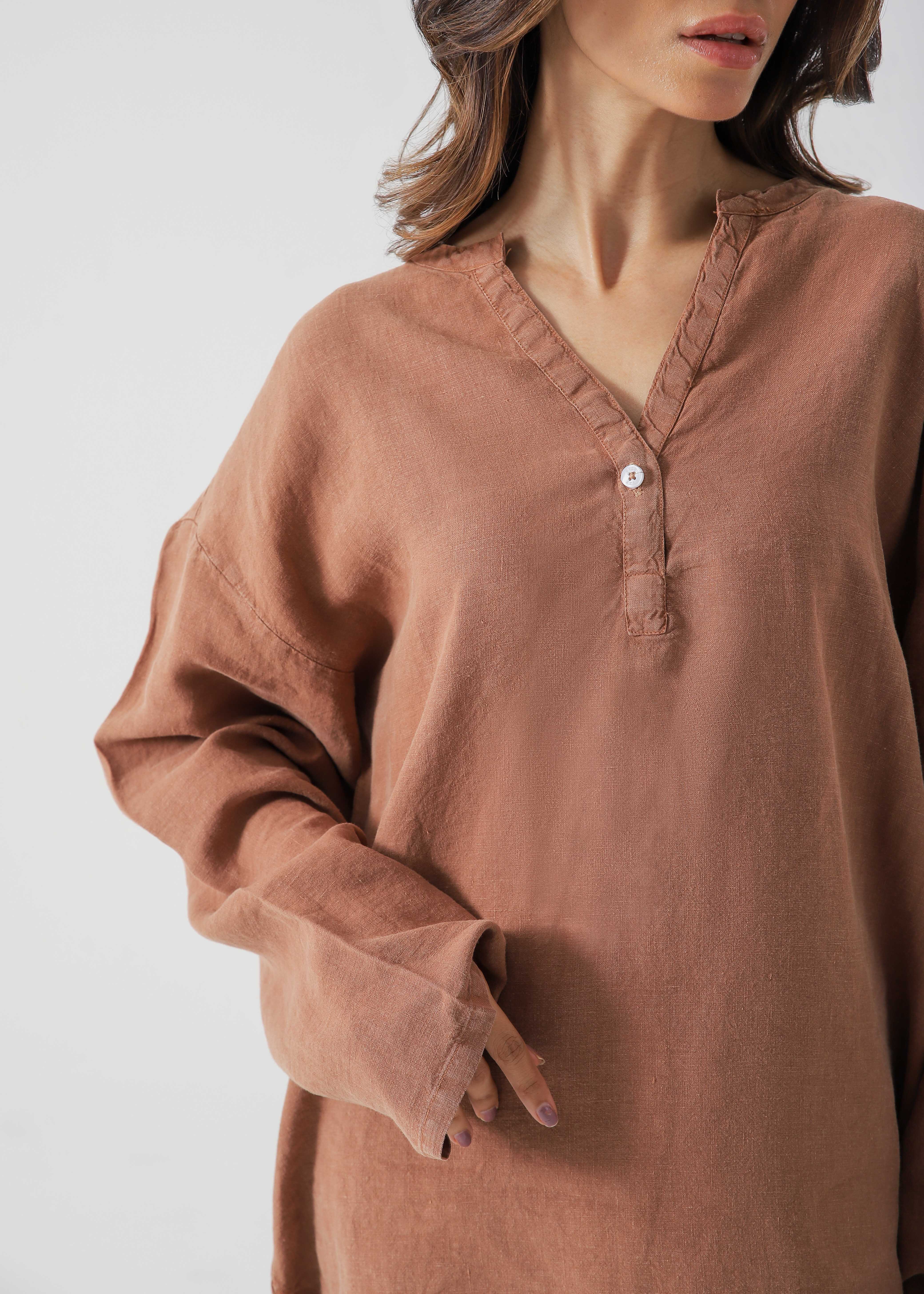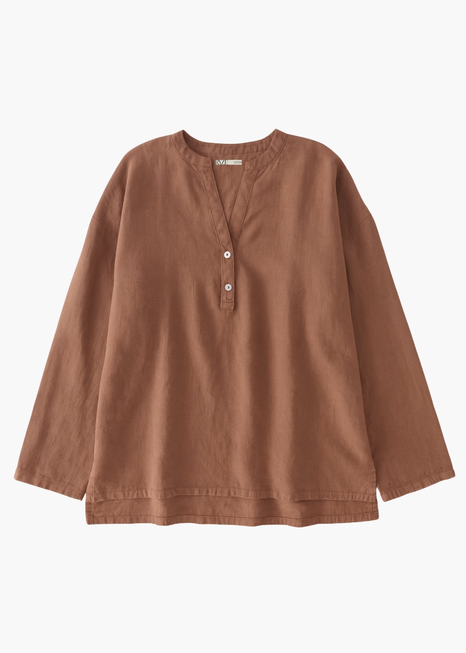 Soft Washed Cotton Feature A Mandarin Collar With Button Detail.