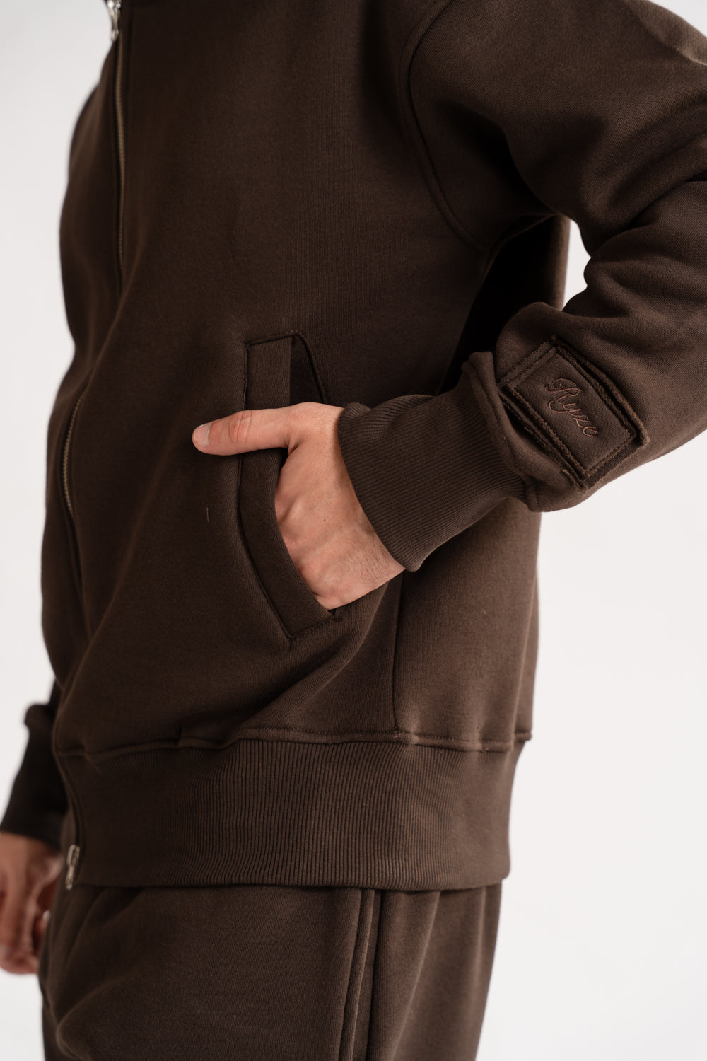 Laid-back shapes and supremely soft fabrics lead a wardrobe that's primed for the weekend. This zip up hoodie is cut in a relaxed fit crafted from pilling free fleece, finely ribbed trims. Style it with matching sweatpants. -    Relax fit -    Zip closure The model is 5’9" (180 cm) and is wearing a size S.