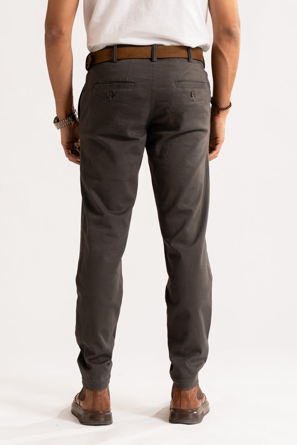 Premium Cotton Chinos, Mid Rise Waist with Button Closure Straight Leg Fit with Side Pockets & Back Pockets. The model...