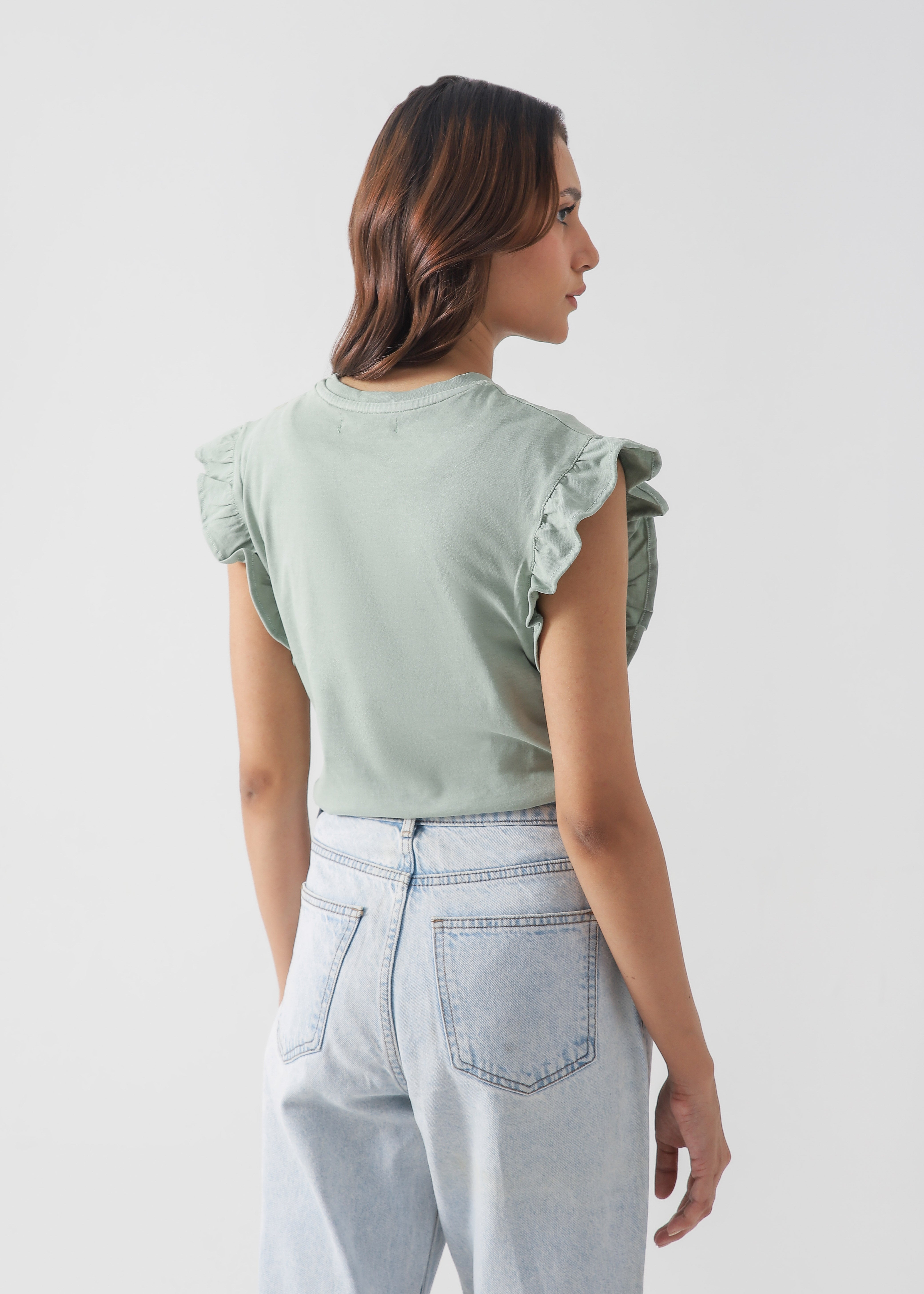 Ruffled Sleeve Cotton T-Shirt