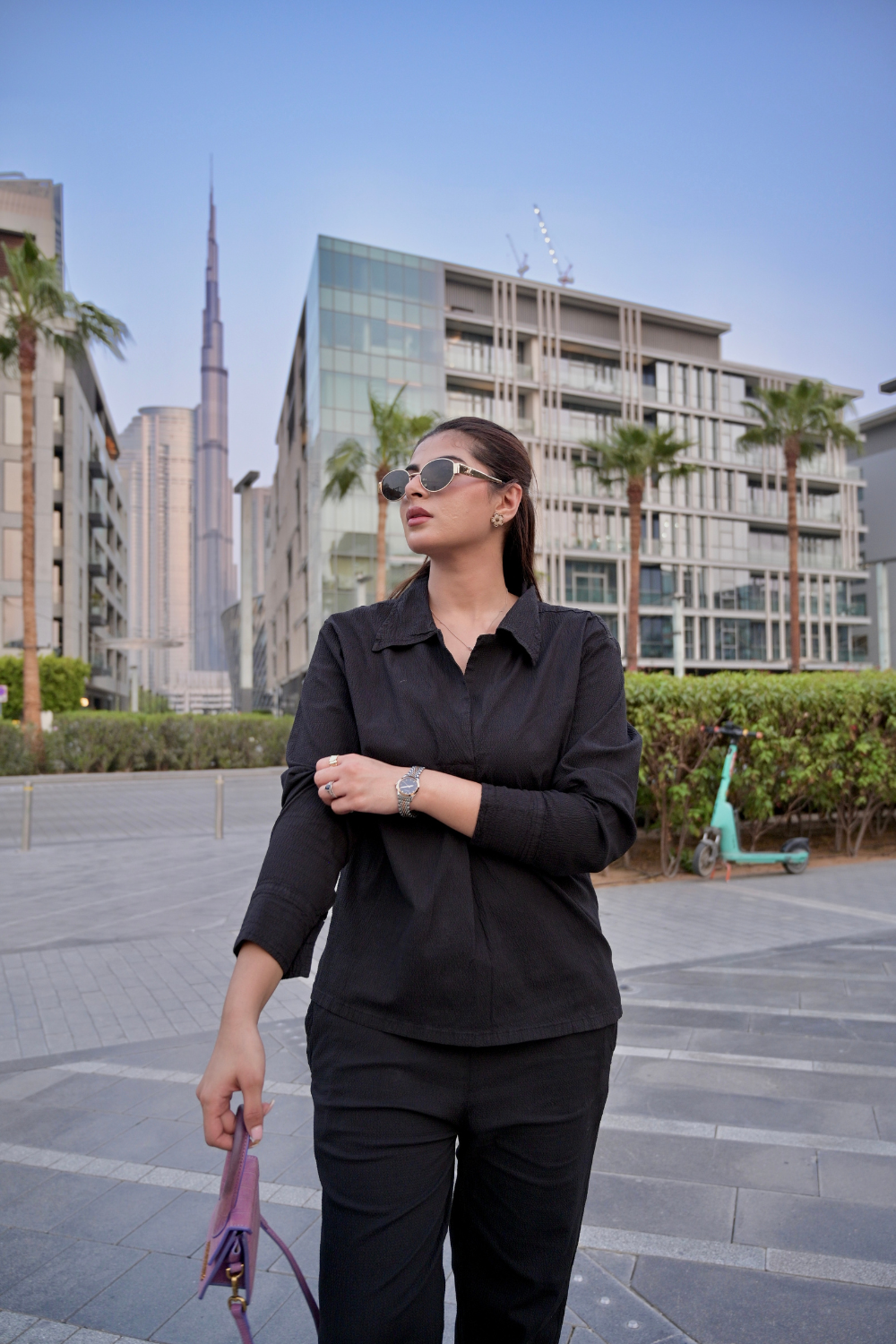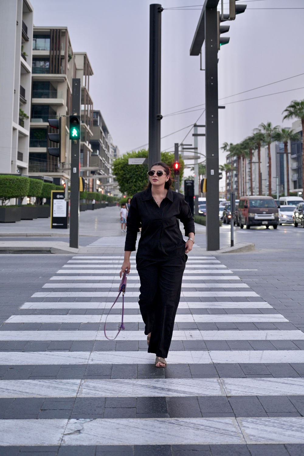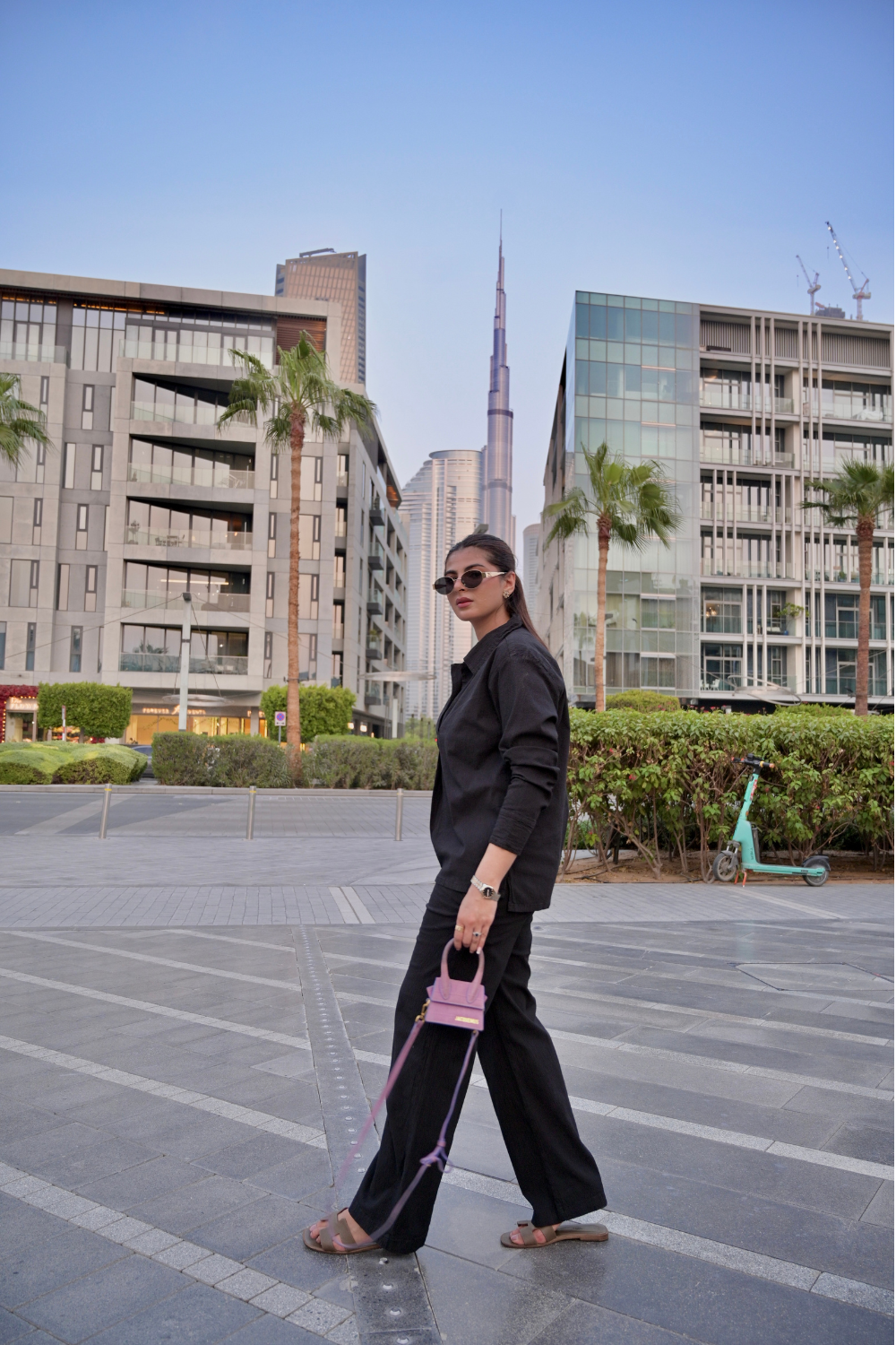 Refined And Breathable Textured Fabric With A Notch Collar Top And Box Pleat In Front Straight Leg Pants With Drawstrings.