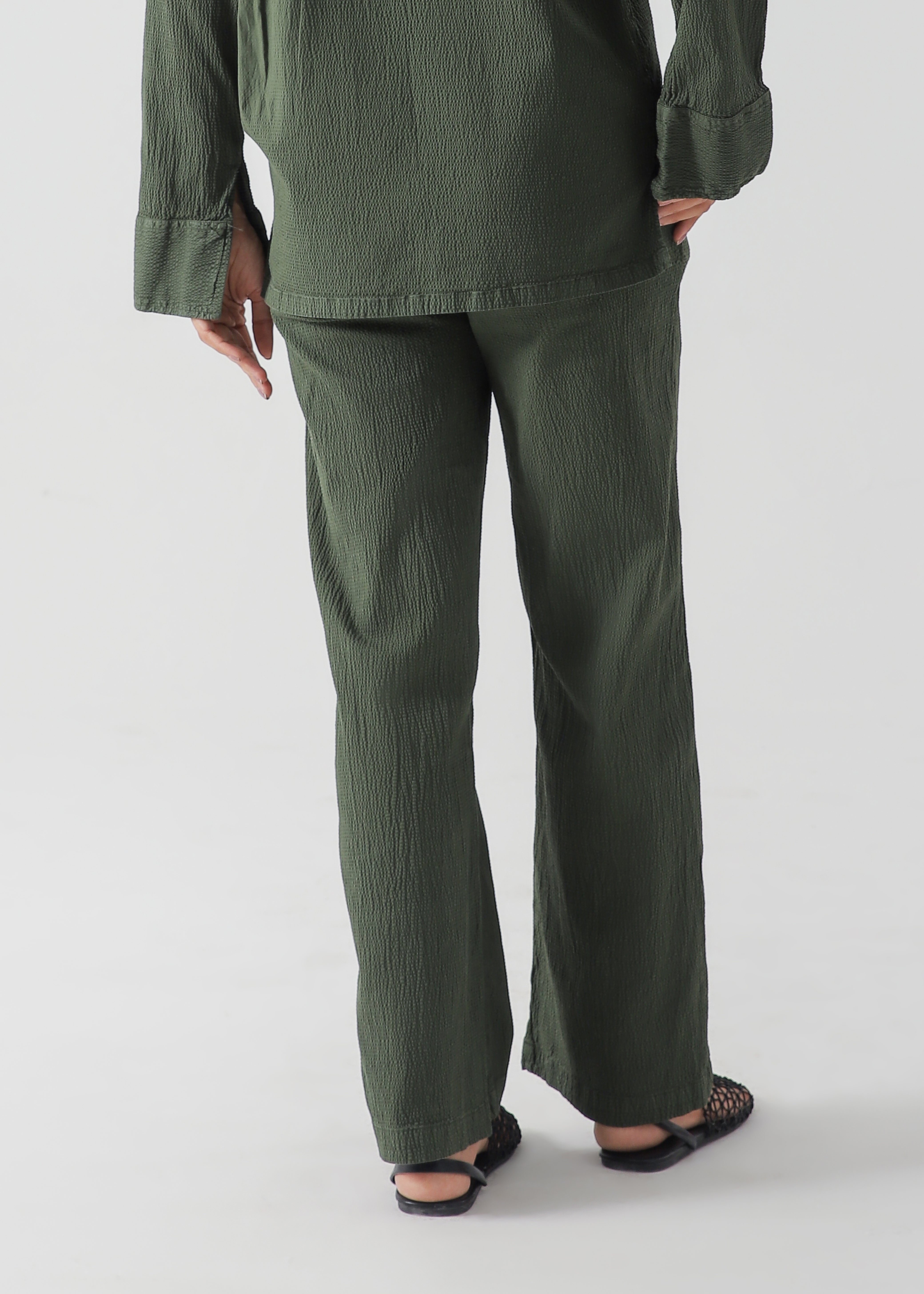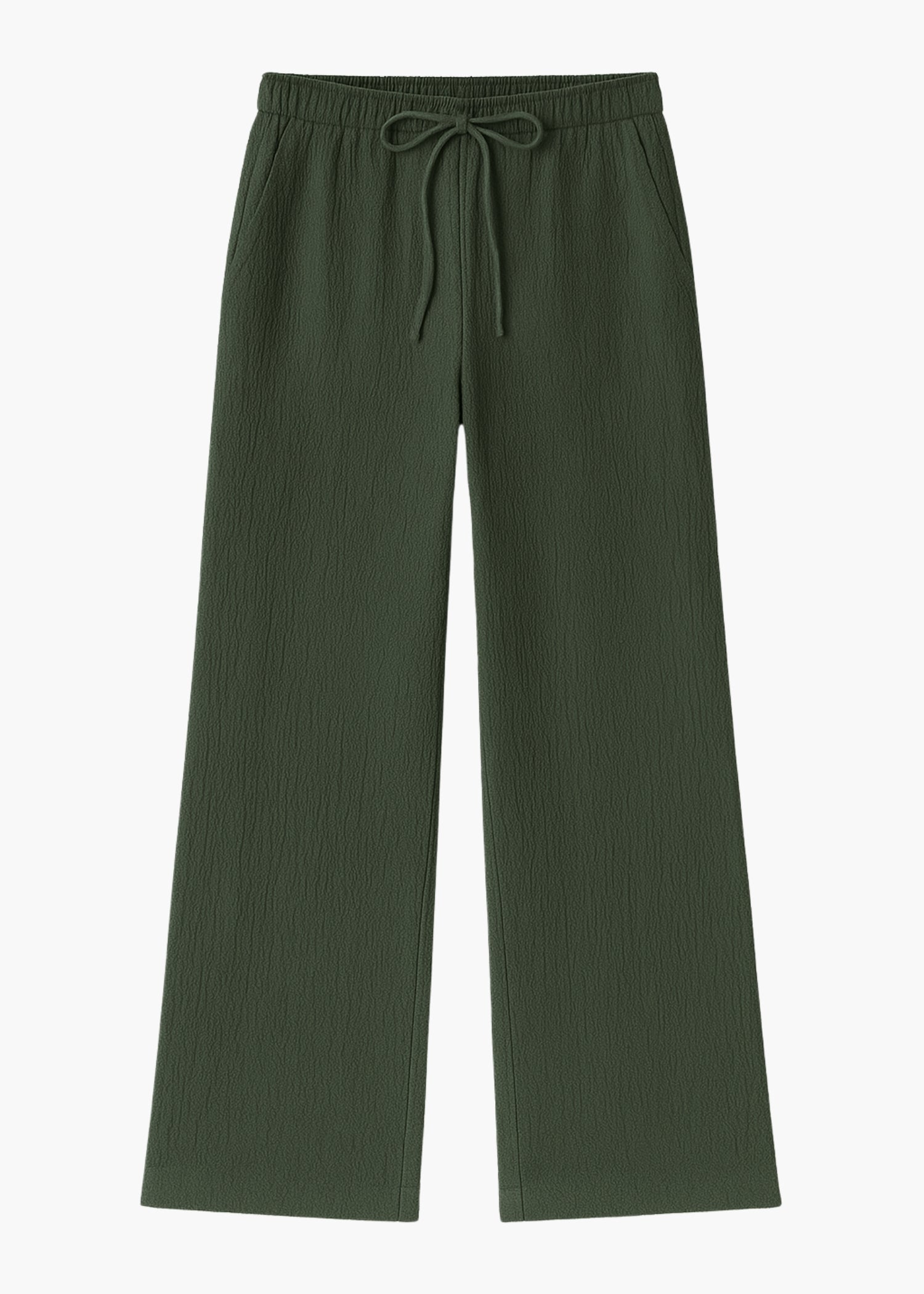 Refined Textured Cotton Fabric Straight Leg Pants With Drawstrings.
