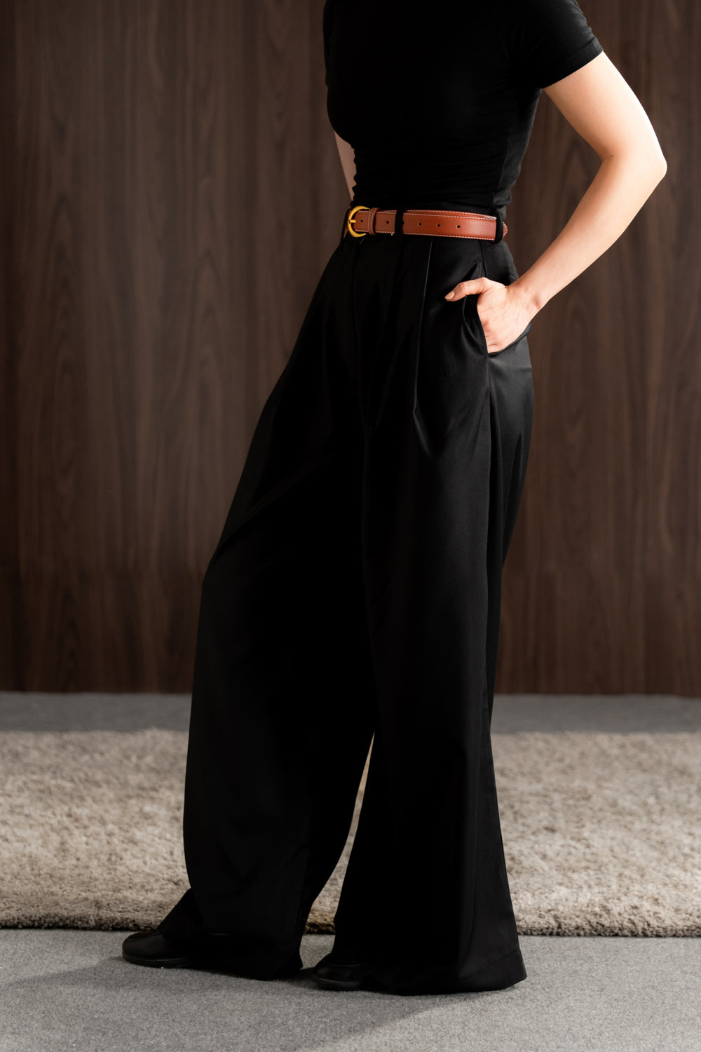 These pants are crafted from woolen fabric. and cut with pleated, wide leg The welt pockets nod to suiting codes, while the clean waistband adjusts to create a bespoke fit.