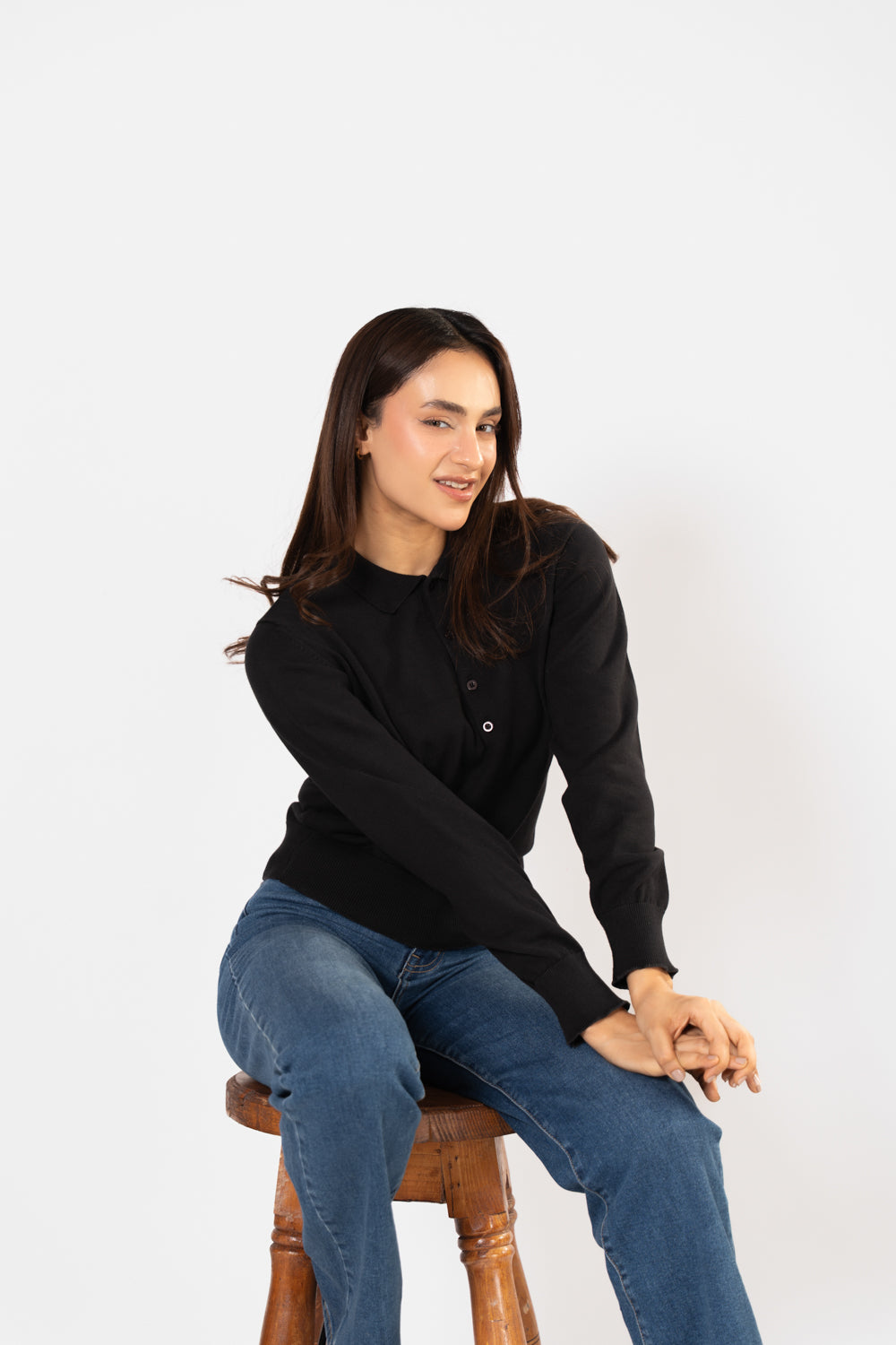 Finely knitted from premium wool, this polo top is designed with a clean button down and cut for a slim, second-skin fit.